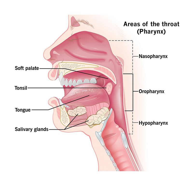 Oropharyngeal cancer is cancer in your oropharynx, the middle section of your throat (pharynx) that makes saliva, keeps your mouth and throat moist and helps you digest food. Healthcare providers have different ways to treat oropharyngeal cancer, but the disease may come back (recur) after treatment. Although you may not be able to avoid oropharyngeal cancer, you may reduce your risk of developing it by protecting yourself against human papillomavirus (HPV), not smoking cigarettes and drinking beverages containing alcohol in moderation.