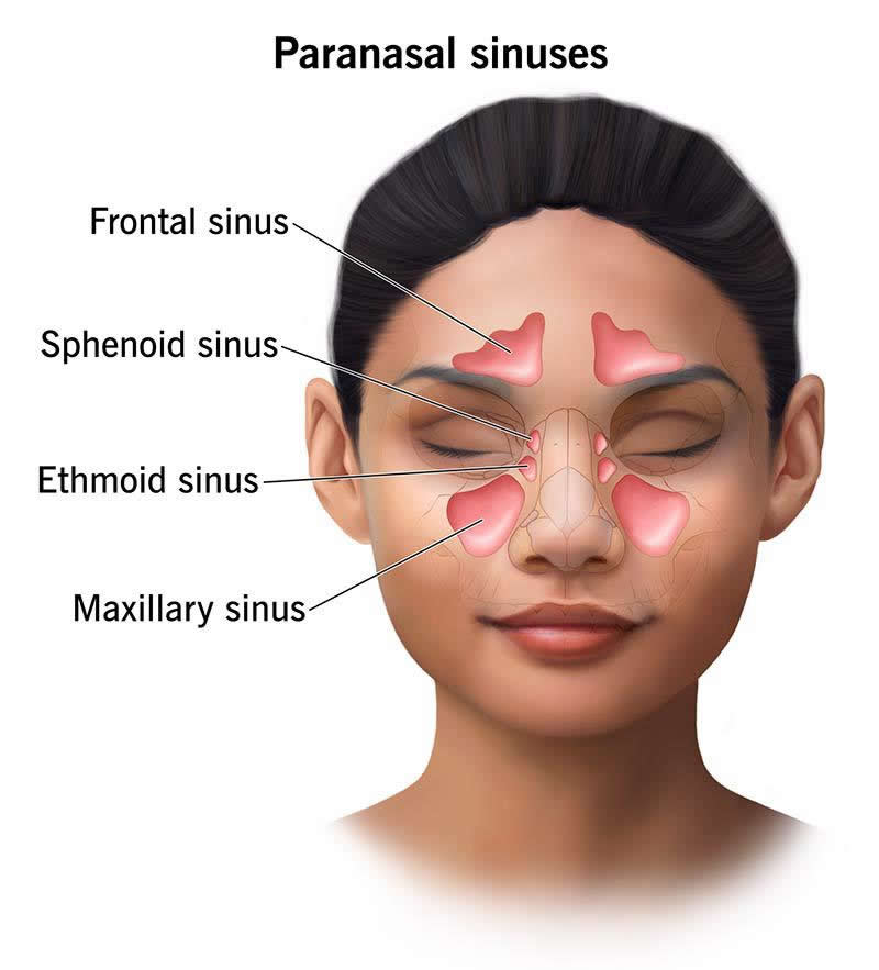 Your paranasal sinuses (or just your “sinuses,” as most people call them) are four paired cavities in your face. They include the frontal, sphenoid, ethmoid and maxillary sinuses. Together, they make mucus that drains your nose, keeping it free of germs and allergens. The most common condition that affects them is called sinusitis.