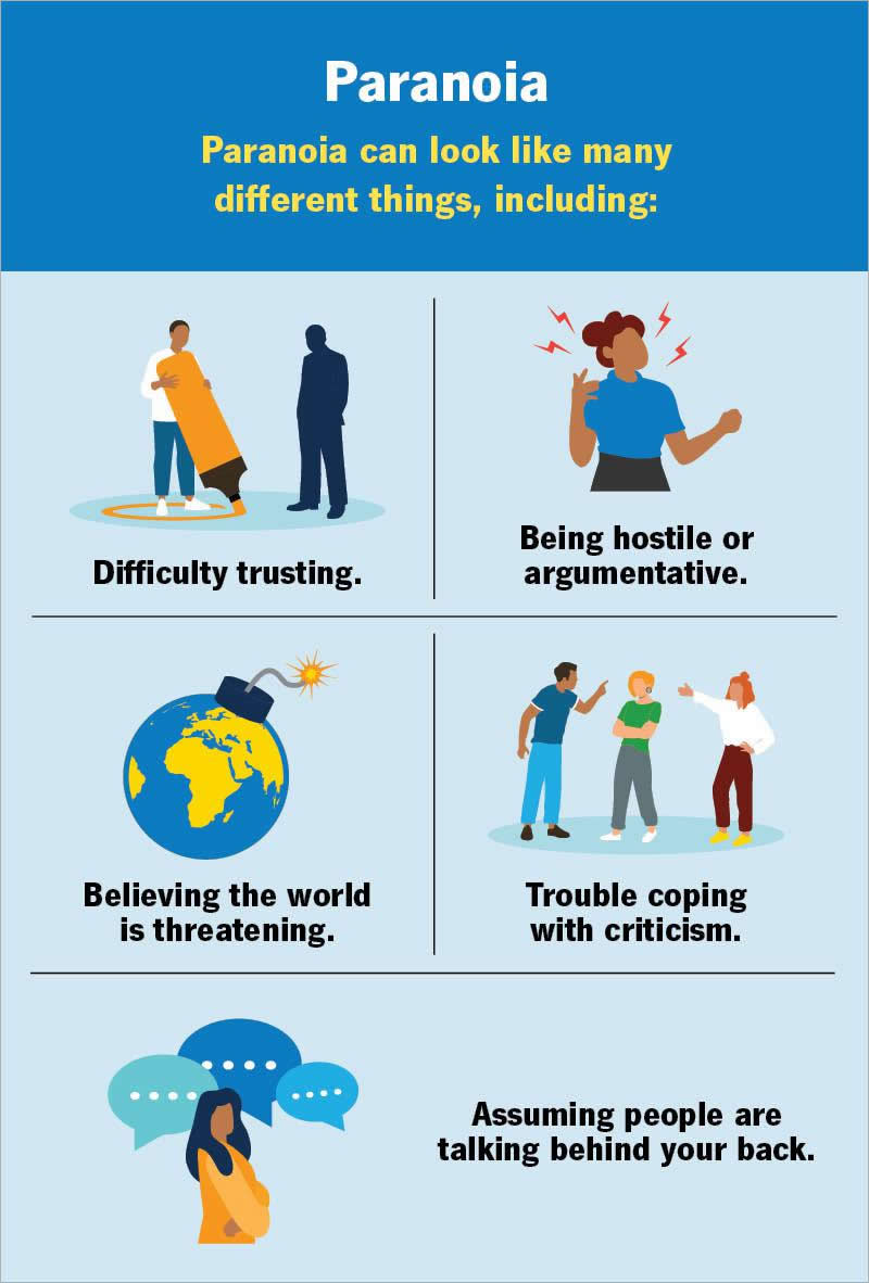 Paranoia involves being overly suspicious and thinking others are out to harm you. Feeling some paranoia every once in a while is normal. But severe paranoia can be a sign of psychosis and certain mental health conditions.