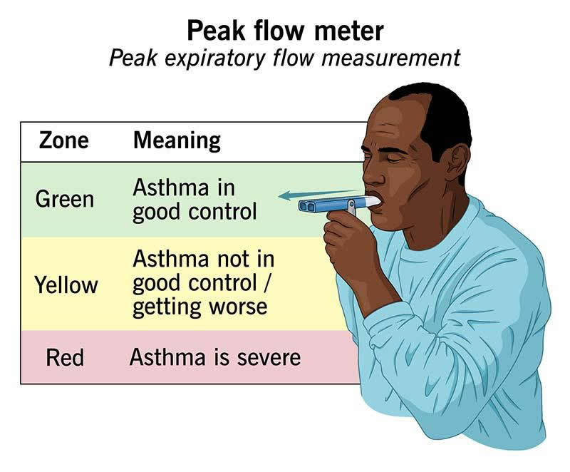 Healthcare providers generally use a “traffic light” system that consists of three zones to determine your peak flow rate: