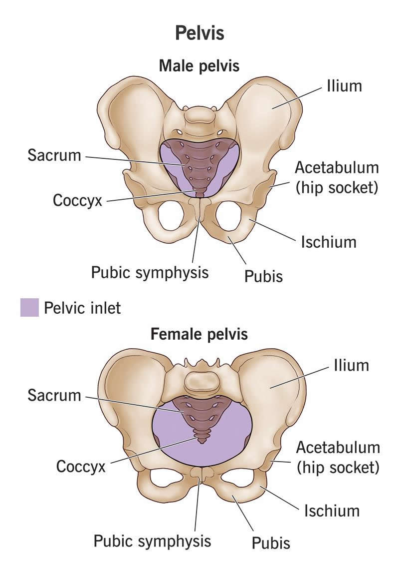 What are the differences in male pelvis anatomy vs. female pelvis anatomy?
