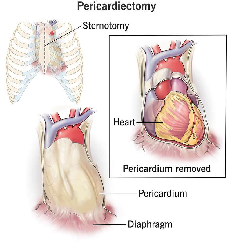 A pericardiectomy, sometimes called “pericardial stripping,” is the surgical removal of part or all of your pericardium. The pericardium: