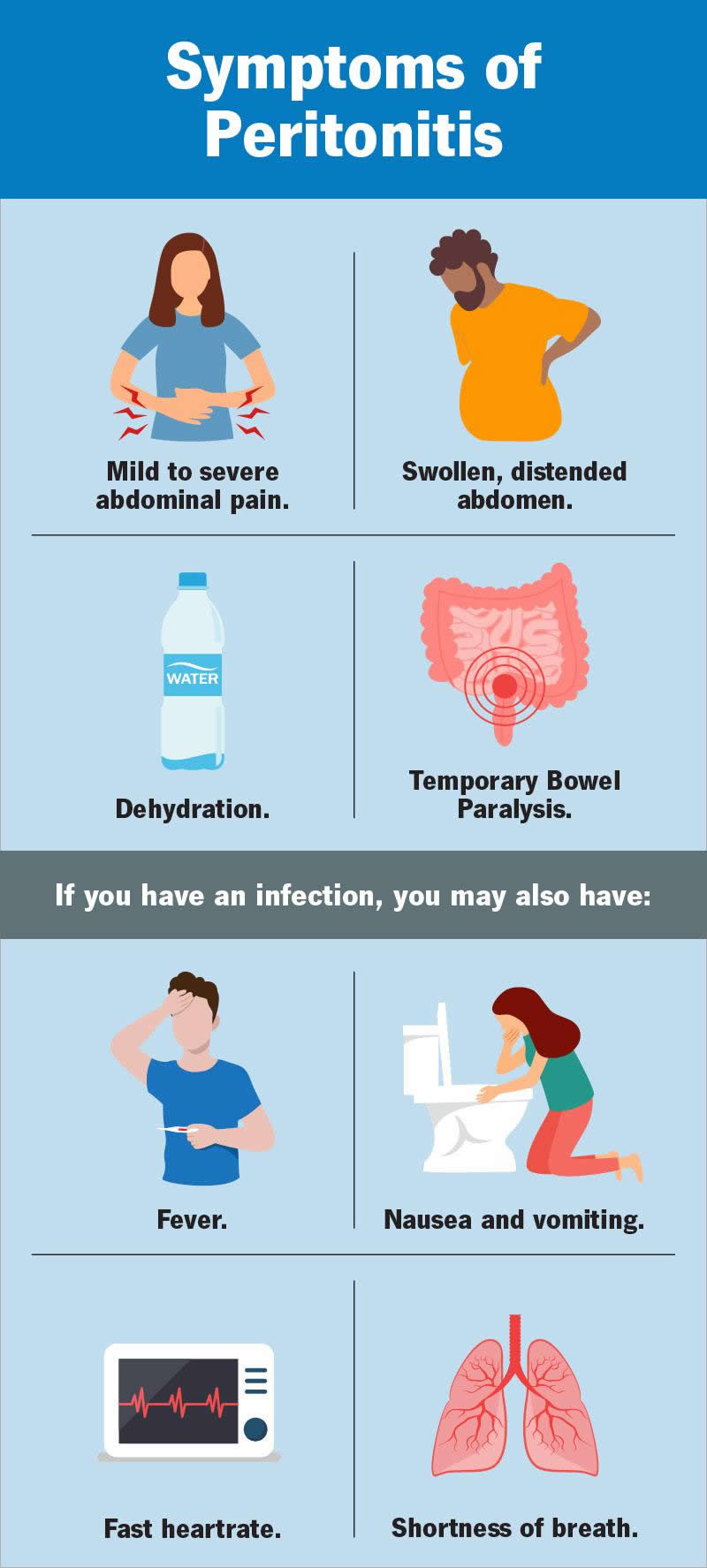 Severe inflammation in your peritoneum triggers a series of changes in your body that may cause sepsis. This is a life-threatening condition that can happen when your body has an extreme reaction to an infection.
