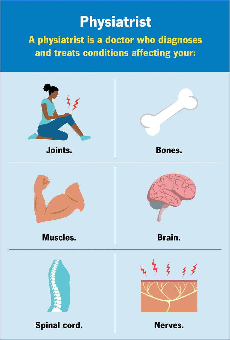 A physiatrist is a doctor who manages illnesses and injuries that make it hard for you to do necessary or desired tasks — like going to work, taking care of your family or engaging in hobbies. These are typically conditions affecting your skeletal system or nervous system. But physiatrists gain a broad base of knowledge on the entire human body. This allows them to see the big picture of how a condition affects your physical functioning and quality of life.
