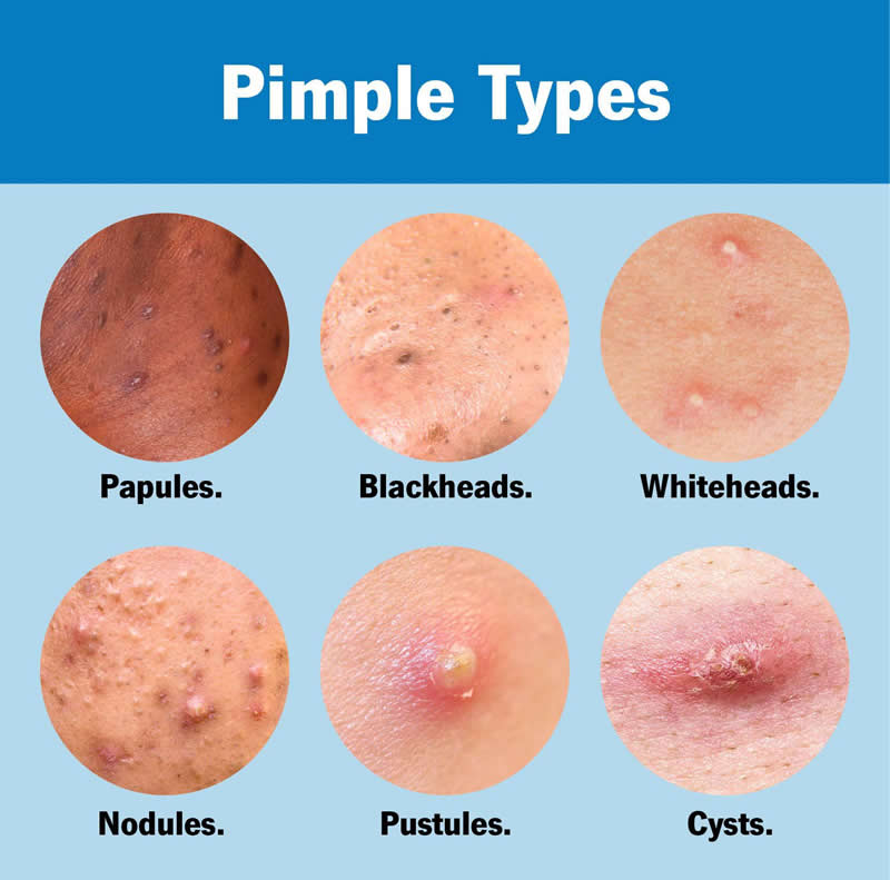 Pimples are a common skin condition caused by clogged or inflamed oil glands or an increased presence of pimple-causing bacteria on your skin. They’re a symptom of acne, and there are many different types, including blackheads, whiteheads, cysts and others. Treatments include home remedies and over-the-counter and prescription pills and gels.