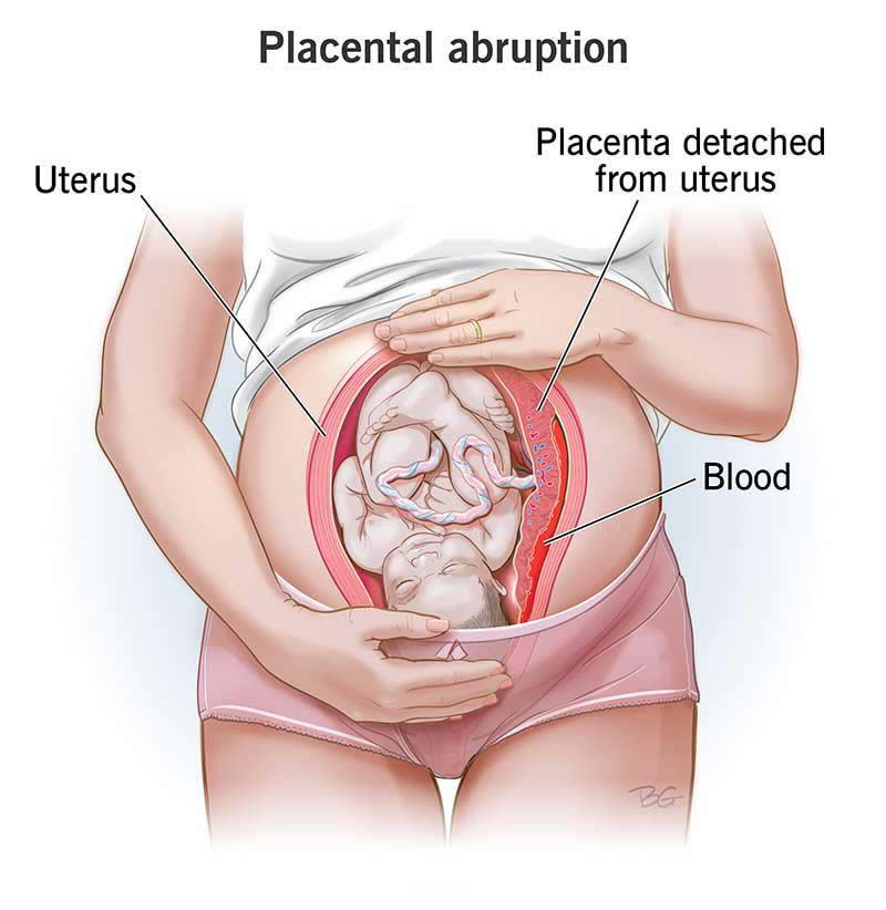 In placental abruption, the placenta may completely or partially detach. This can decrease the amount of oxygen and nutrients the fetus gets. It can also cause heavy bleeding. Your healthcare provider will need to monitor you closely and determine if an early delivery is necessary.