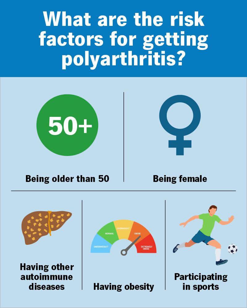 You’re more likely to develop polyarthritis if you’re at a higher risk for developing arthritis in the first place. Arthritis can affect anyone, but some people are more likely to develop it, including those who: