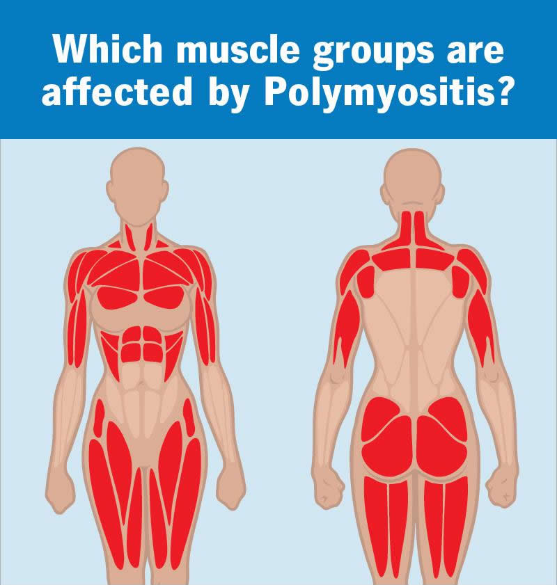 If you have polymyositis, you may have inflammation in multiple muscles at the same time. It usually affects the muscles on or near the center of your body, including in your: