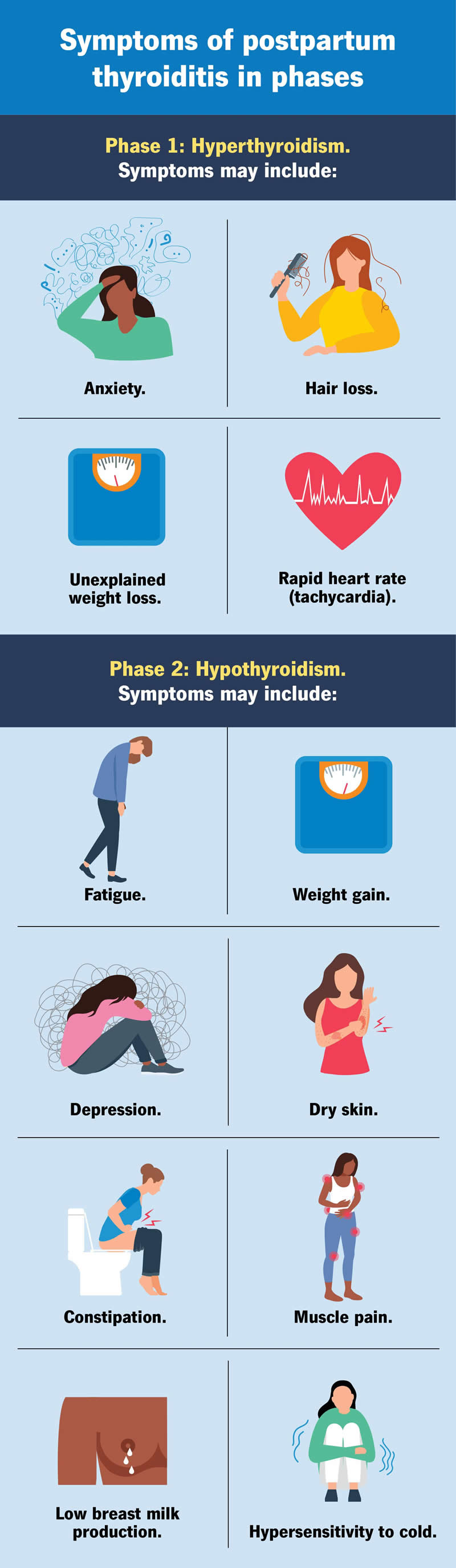 Postpartum thyroiditis usually unfolds in phases.