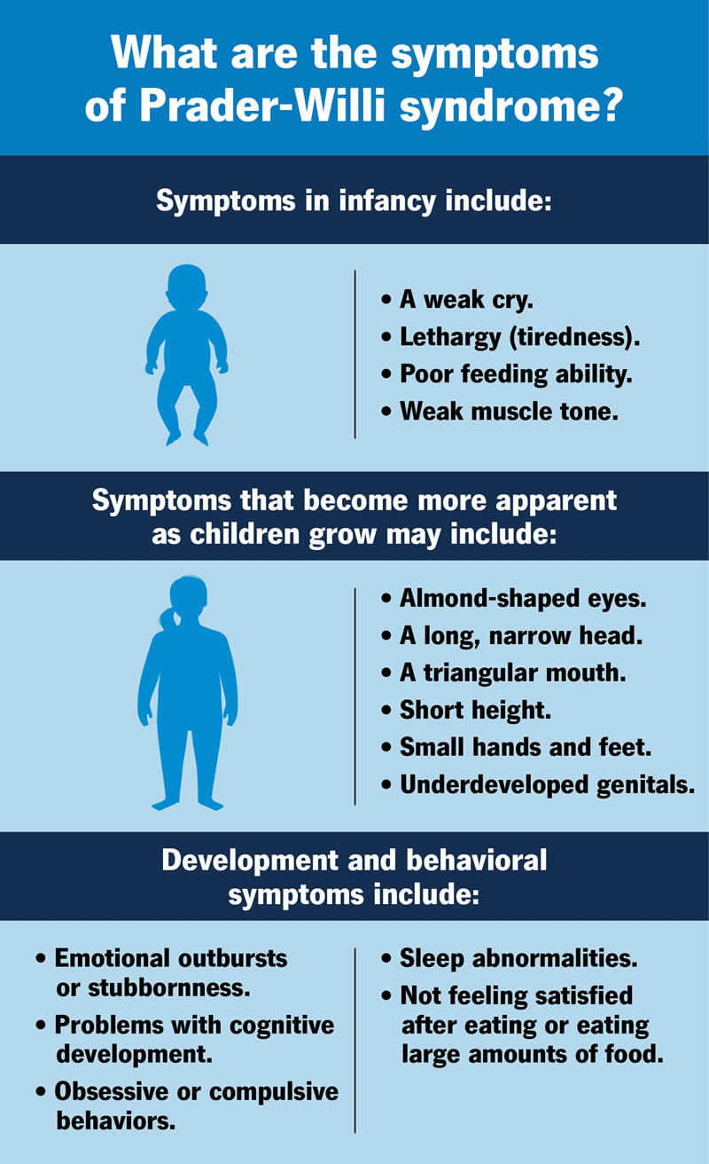 If you notice your child has signs of Prader-Willi syndrome, visit their healthcare provider. It’s especially important to see their provider if they miss developmental milestones during infancy. With an early diagnosis, your child’s provider can help you manage your child’s condition, help them meet developmental milestones and manage their diet to reduce complications from the condition.