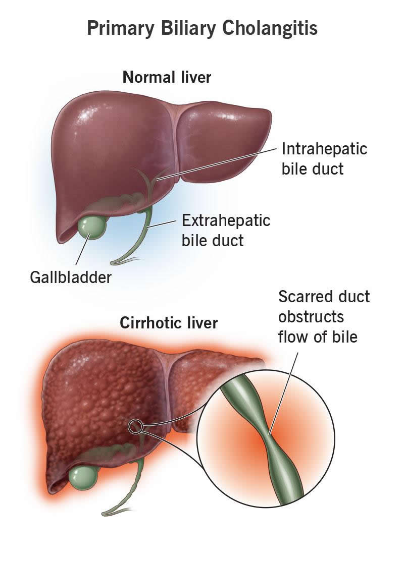 Primary biliary cholangitis is a chronic and progressive condition that causes inflammation and, eventually, the destruction of the bile ducts that run through your liver. Without working bile ducts, bile backs up in your liver, causing liver damage. This can lead to cirrhosis of the liver. But medication can delay and sometimes prevent it.
