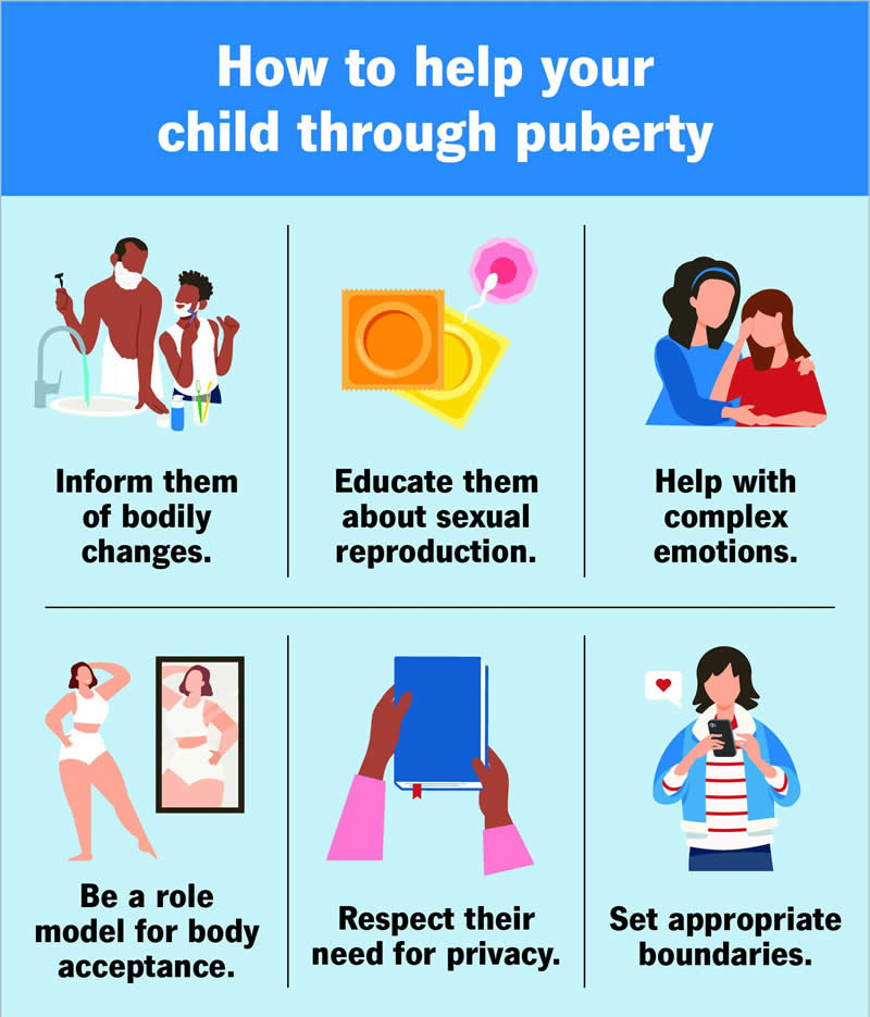 - Providing reassurance when they experience fear, confusion or other complex emotions related to puberty.