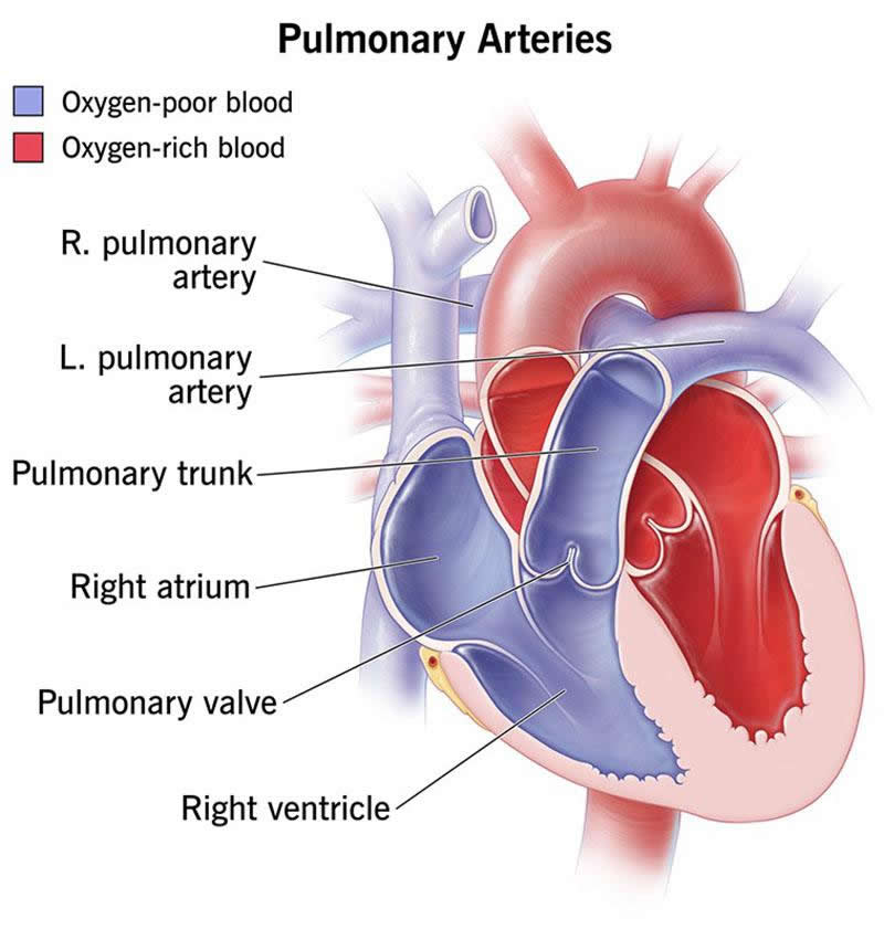 Your pulmonary arteries are blood vessels that carry oxygen-poor blood from the right side of your heart to your lungs. In medical terms, the word “pulmonary” means something that affects your lungs.