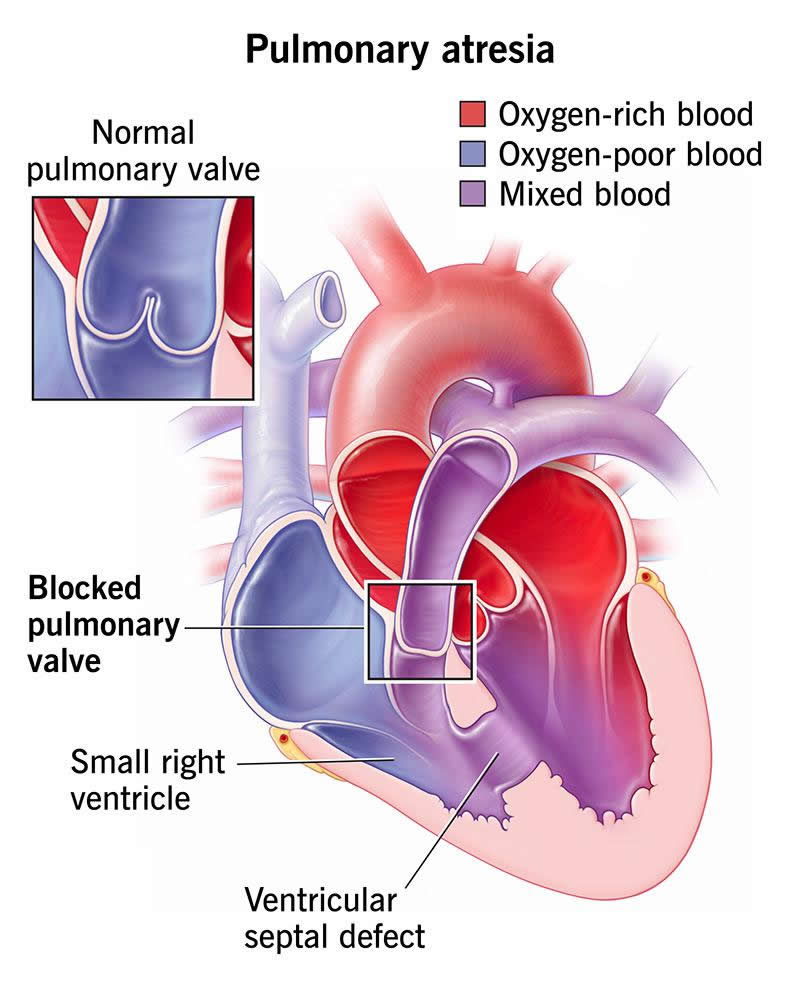 Pulmonary atresia is a congenital heart defect, which means it’s present at birth. With this issue, an infant is missing a functional pulmonary valve that normally helps blood get to your pulmonary artery. Blood travels from there to your lungs, where it takes in oxygen. Without this valve, your blood can’t get enough oxygen for your body.