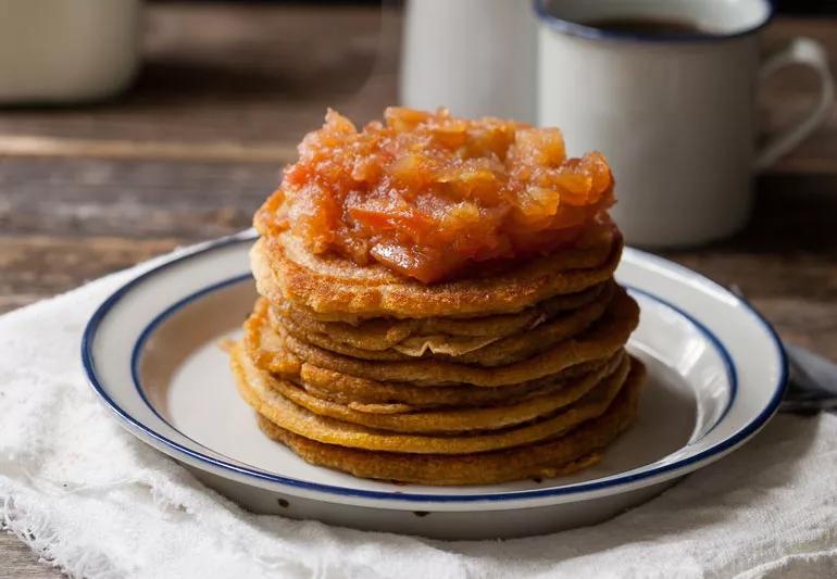 You’ll flip for these pumpkin pancakes, which bring the hearty taste of autumn to the traditional breakfast flapjack. Double down on the fall feeling by topping the pancakes with sautéed apple slices.