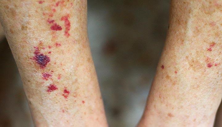 If you have senile purpura, you may have bruises or spots on the skin due to age or sun exposure. This type of purpura happens when our blood vessels become weak. It’s common in older adults.
