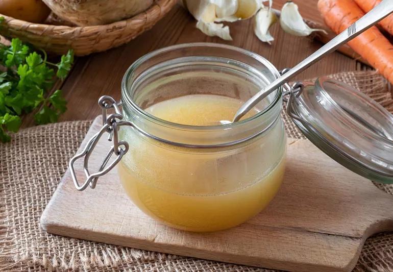 - To serve, heat the broth (which will resemble gelatin) over medium-low heat, stirring occasionally.