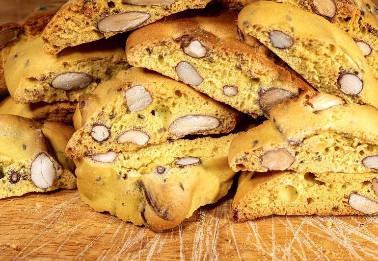 - Place the logs on a cutting board and slice on the diagonal into 1/2-inch cookies. Place on the baking sheets and bake for 15 minutes to ensure crispness. Transfer to a cooling rack. Store in an airtight container.