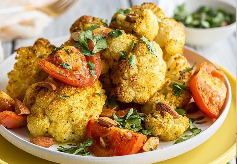 Recipe: Curry Cauliflower With Tomatoes, Almonds and Cilantro