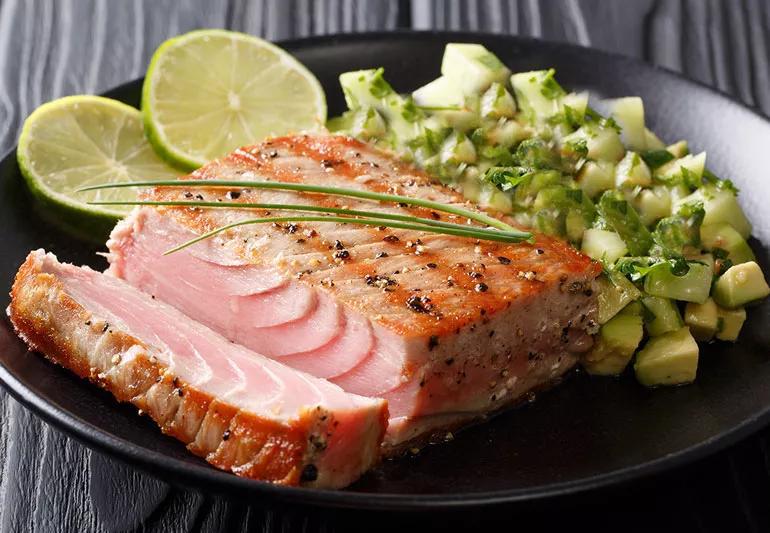 Recipe: Grilled Tuna with Avocado, Cucumber and Ginger Salsa