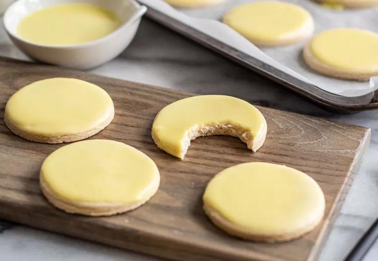 - To make the icing, use a small bowl to combine the powdered sugar, 2 tablespoons of the hot water and the vanilla, and orange or lemon extract. Stir until smooth. If the icing is too thick, add a few more drops of water. Color with food coloring if desired. When the cookies are completely cool, decorate with icing.