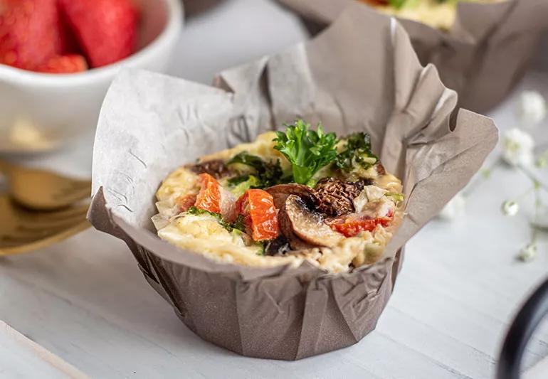 These omelet “muffins” are a snap to make. Egg whites and low-fat shredded cheese keep this recipe light, and added veggies offer flavor and a nutritional punch.