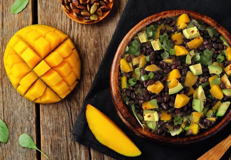 Tex-Mex doesn’t always have to mean globs of queso on everything! This salad provides all of the flavors of a Tex-Mex favorite, without all of the calories. The avocado provides satisfying fat, the fiber comes from the black beans while the mango provides subtle sweetness.