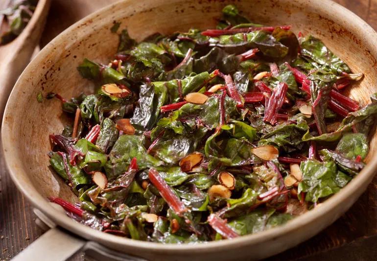 Looking to sneak more greens into your diet? Swiss chard — related to beets and spinach, but similar to mustard greens and collards — provides plenty of vitamin C and K, along with fiber and iron. And our easy Sautéed Swiss Chard With Slivered Almonds recipe makes getting those greens in simple, as well as tasty.