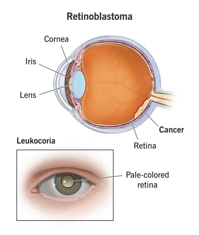 Retinoblastoma is a childhood cancer of the eye. It’s rare, and it has a very high overall survival rate. It happens when cells in the retina at the back of your eye multiply uncontrollably. Early detection of symptoms, like a white- or pale-colored eye pupil (leukocoria), as especially seen in eye reflection in photographs, improves the likelihood of a good outcome.