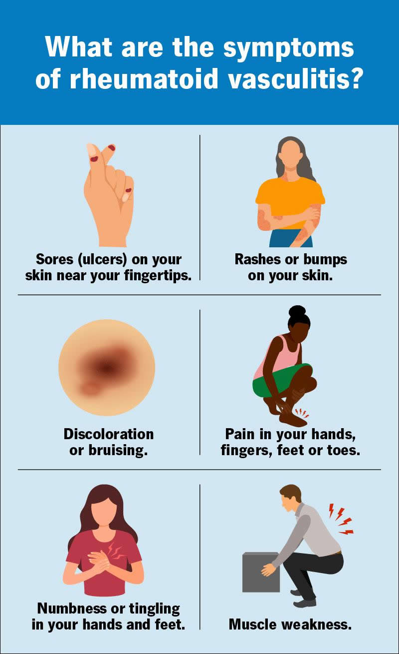It can be extra frustrating to find out the rheumatoid arthritis you’ve been managing for years is causing inflammation in your blood vessels alongside all your joint symptoms. Your healthcare provider will help you find ways to tweak your RA treatment plan alongside any new medications you might need. They’ll tell you what to watch out for and how you can prevent complications.