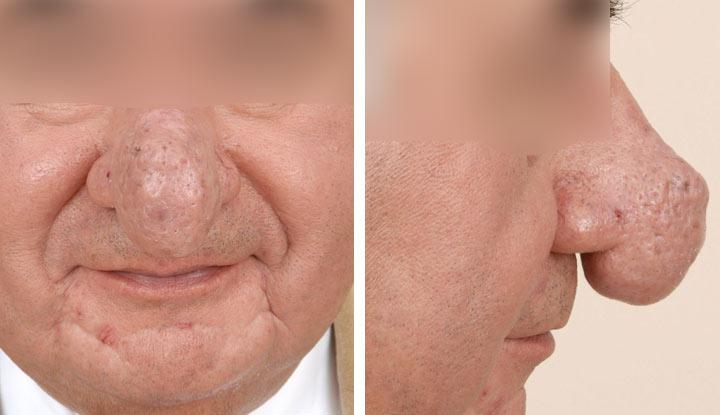 Rhinophyma causes your nose to become enlarged, red, bumpy and bulbous at the tip. This skin condition can be an advanced form of rosacea or happen without a rosacea diagnosis. Surgery is the main form of treatment, but there are other options available, too.
