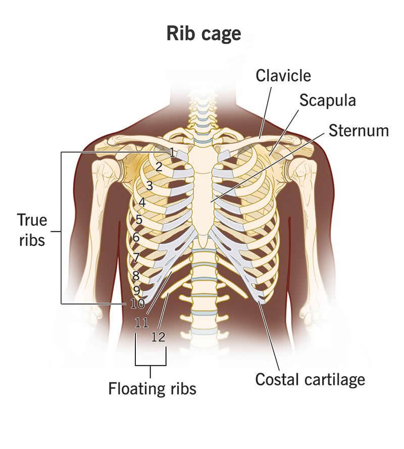 As part of your skeletal system, your rib cage is made up of bones and the joints that connect them.