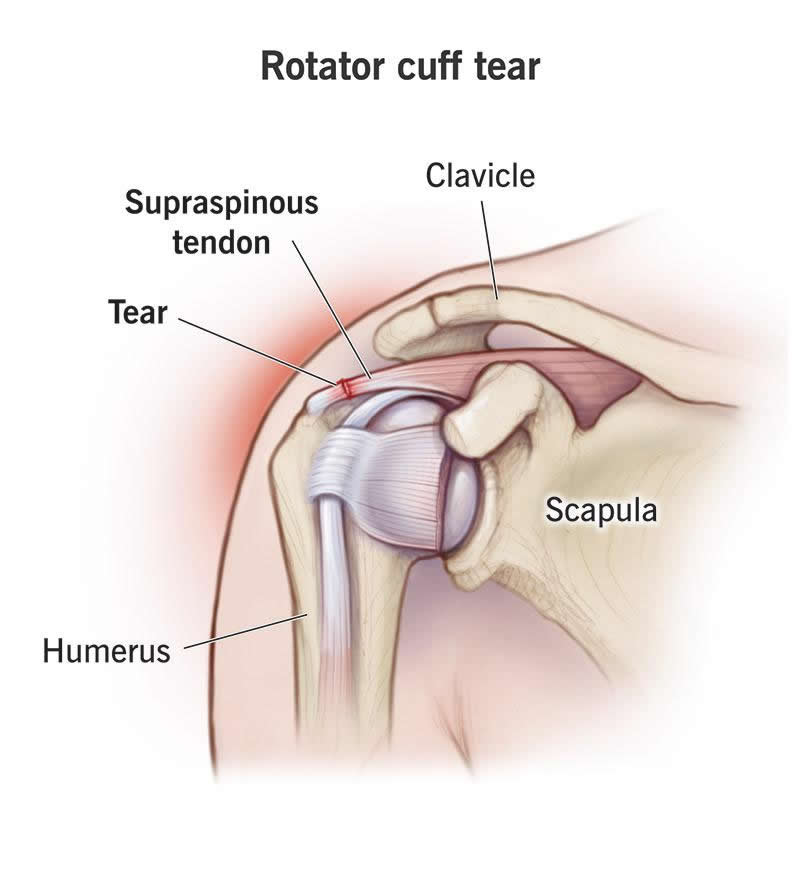 A partial or complete rotator cuff tear makes it difficult to raise and move your arm. You may have shoulder pain and arm weakness. Rotator cuff injuries are common, especially as you get older. Rest, pain relievers and physical therapy can help. Some people need surgery to reattach a torn rotator cuff.
