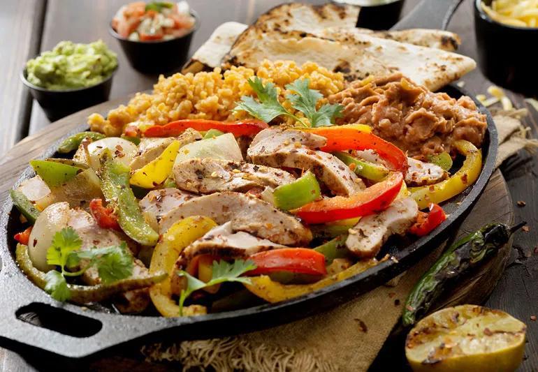 - Choose fajitas over quesadillas. Instead of ordering quesadillas, tortillas filled with meat and lots of cheese, opt for chicken fajitas, marinated grilled chicken with onions, green peppers, lettuce and diced tomatoes wrapped in a soft corn tortilla.
