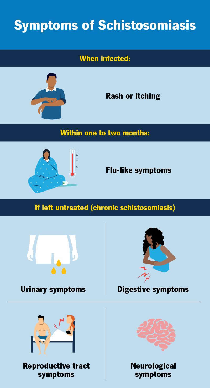 Talk to a healthcare provider if you’ve been exposed to water that could have Schistosoma in it, especially if you develop flu-like symptoms weeks later. They can test you for an infection a few weeks after exposure. Early treatment can kill the infection before it spreads.