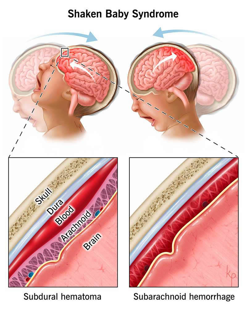 Infants’ heads are very large and heavy in proportion to the rest of their bodies. When a child is shaken, their brain bounces back and forth against the sides of their skull. Shaking can cause bleeding in their brain or behind their eyes.
