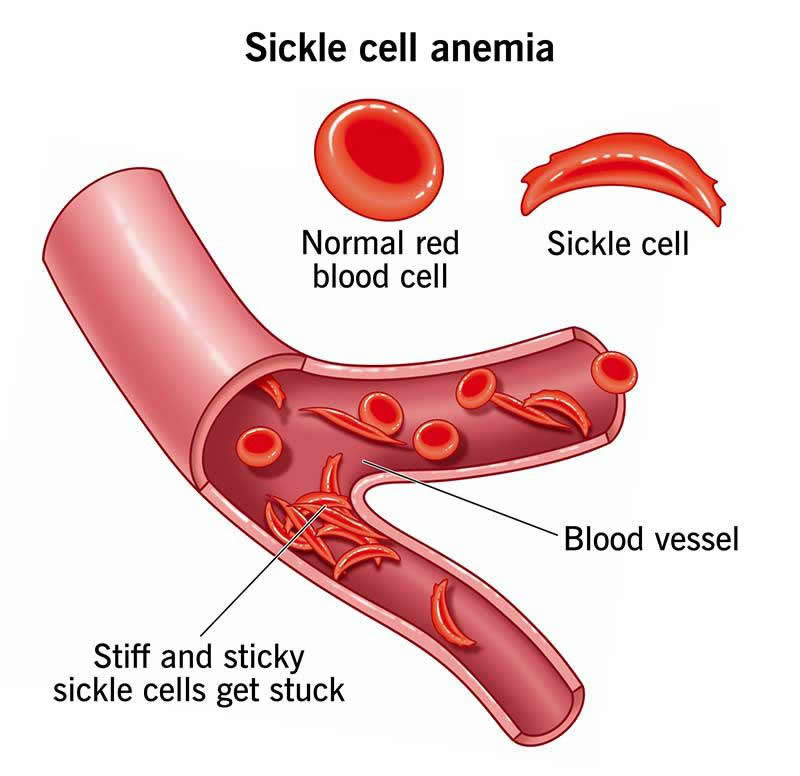 Sickle cell anemia happens when you inherit genetic mutations (changes) that affect the HBB gene. This gene gives instructions on how to make beta-globin, which is part of your hemoglobin protein. Hemoglobin helps your red blood cells to carry oxygen throughout your body.