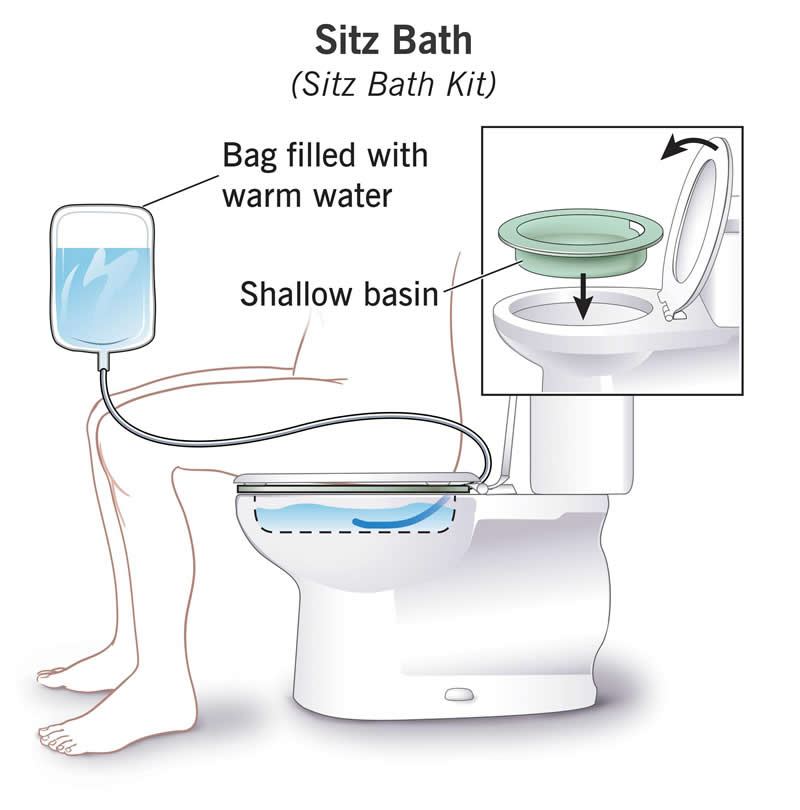 You can take a sitz bath in your bathtub or make a sitz bath using a small plastic tub that fits over your toilet.