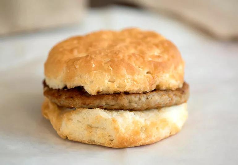 - Sausage biscuit. The sausage biscuit is basically a saturated fat and sodium bomb. The sky-high sodium in the highly processed sausage can make your blood pressure surge. If you have hypertension, it may increase your risk for stroke too. Nitrates and nitrites in sausage have even been linked to increased risk of certain cancers.