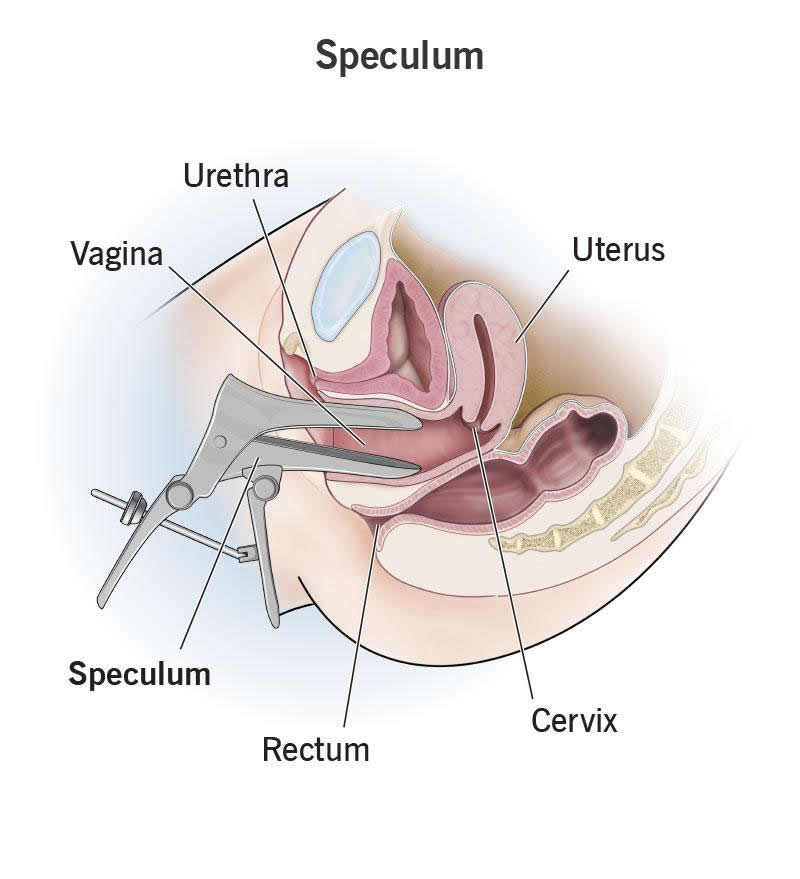 You’ll most likely encounter a speculum during a pelvic exam or Pap smear. During a pelvic exam, your provider gently inserts the duck-billed part of the speculum into your vagina and opens the speculum to widen your vaginal walls. The widening makes it easier view your cervix and check for abnormal growths or other irregularities. During a Pap smear, your provider collects cells from your cervix that are later tested for signs of cervical cancer.
