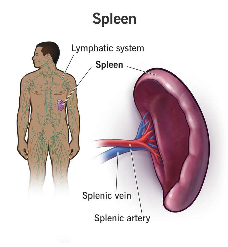 The spleen is a small organ inside your left rib cage, just above the stomach. It’s part of the lymphatic system (which is part of the immune system). The spleen stores and filters blood and makes white blood cells that protect you from infection. Many diseases and conditions can affect how the spleen works. A ruptured (torn) spleen can be fatal.