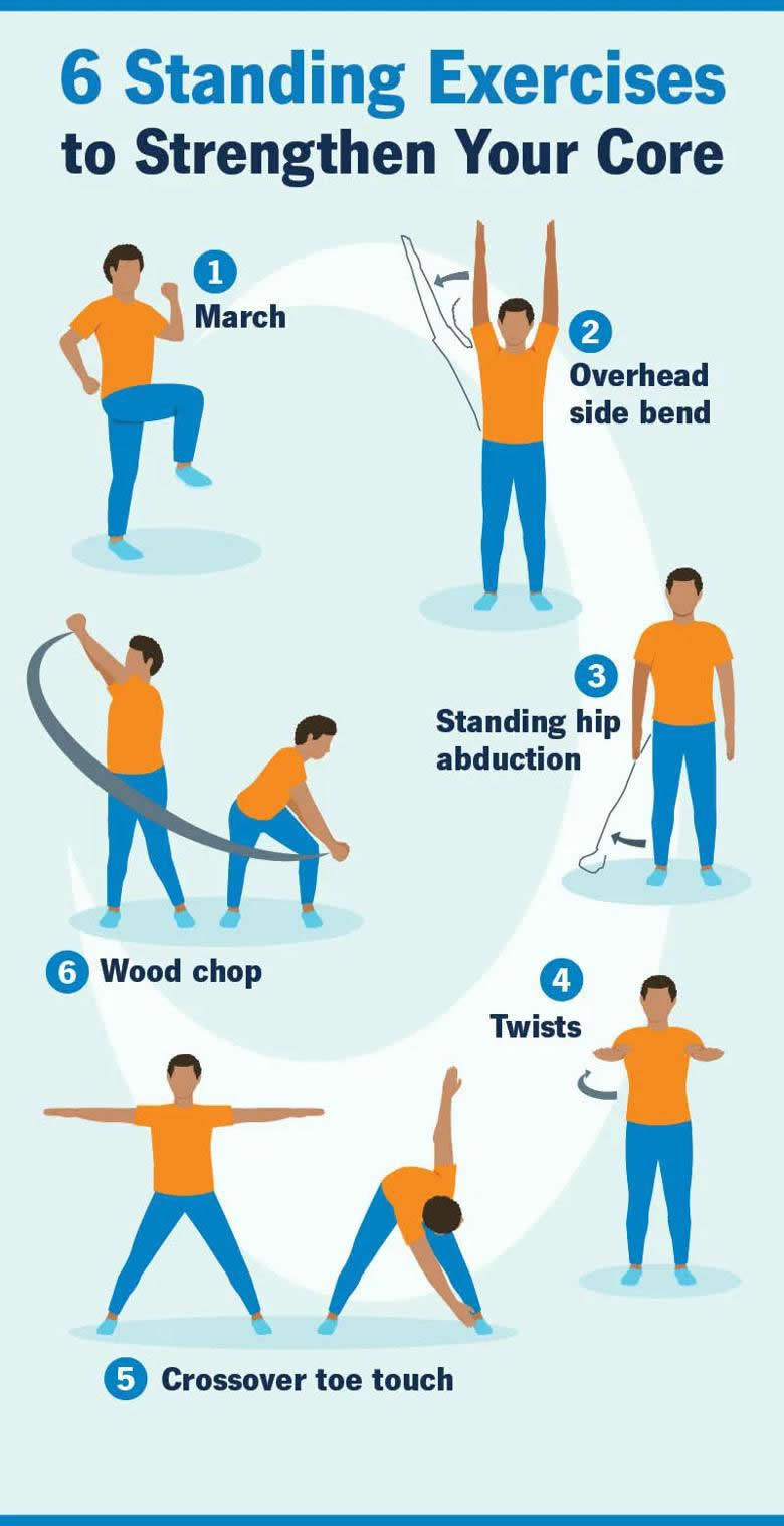 “Standing ab exercises really don’t take a lot of time,” emphasizes Lawton.