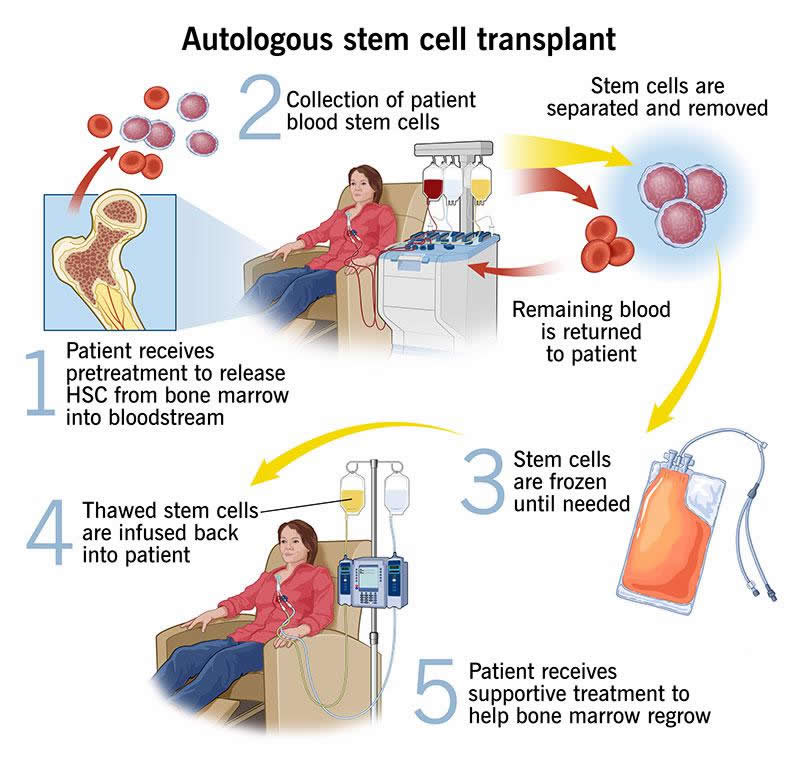 - Autologous stem cell transplant: Uses your own healthy stem cells