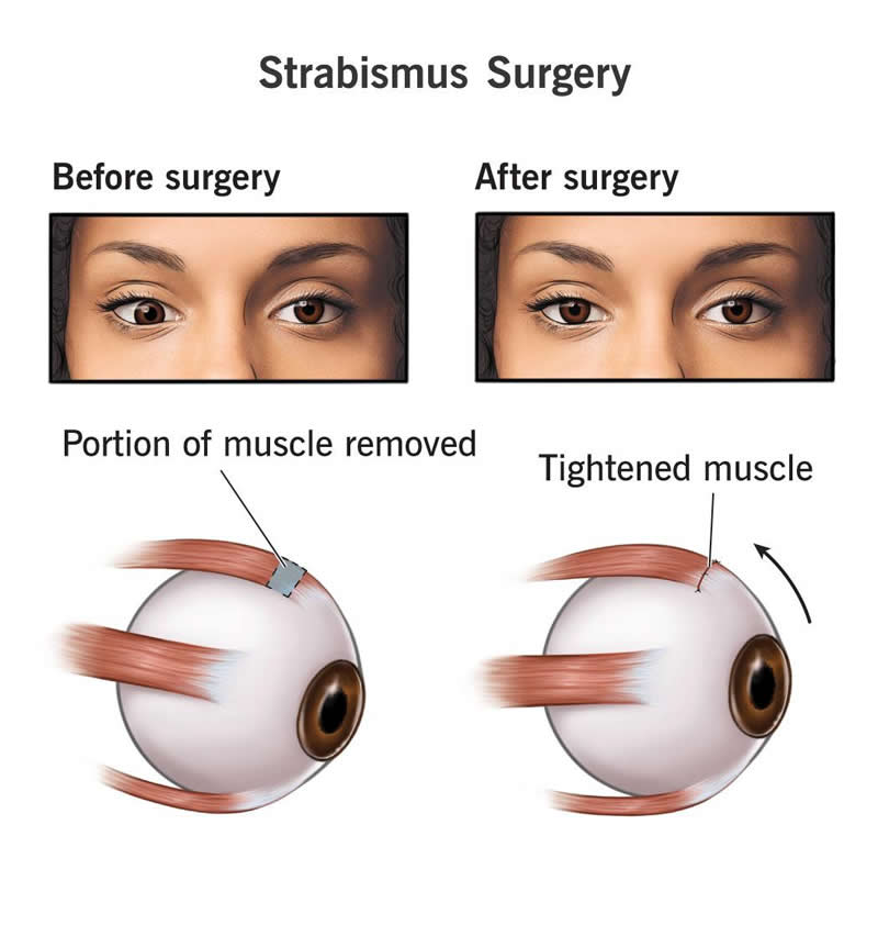 Strabismus surgery is eye muscle surgery to treat misaligned eyes (strabismus). This procedure makes your eye muscles either tighter or looser and aligns the position of your eyes so they’re centered and can work together.