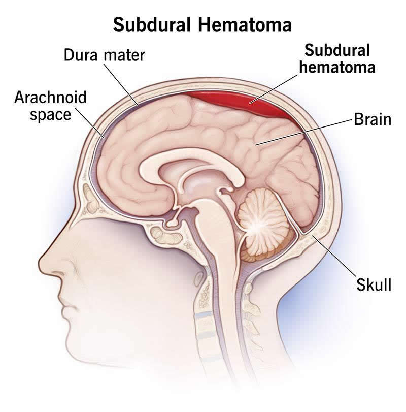 More broadly, a subdural hematoma is a type of traumatic brain injury (TBI).