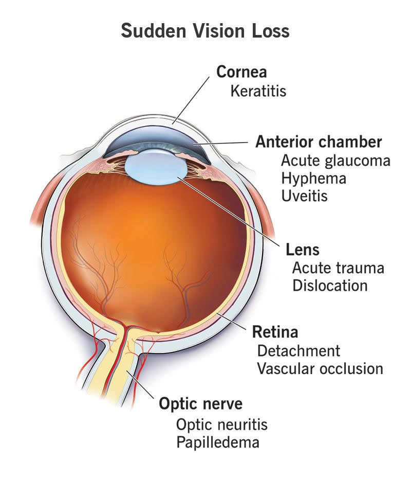 Sudden vision loss is a medical emergency. Call 911 or go to an emergency room immediately.