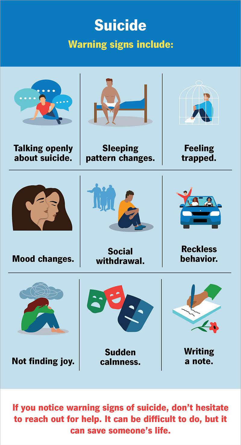 If you notice warning signs of suicide, don’t hesitate to reach out for help. It may be hard to do, but it can save your life.