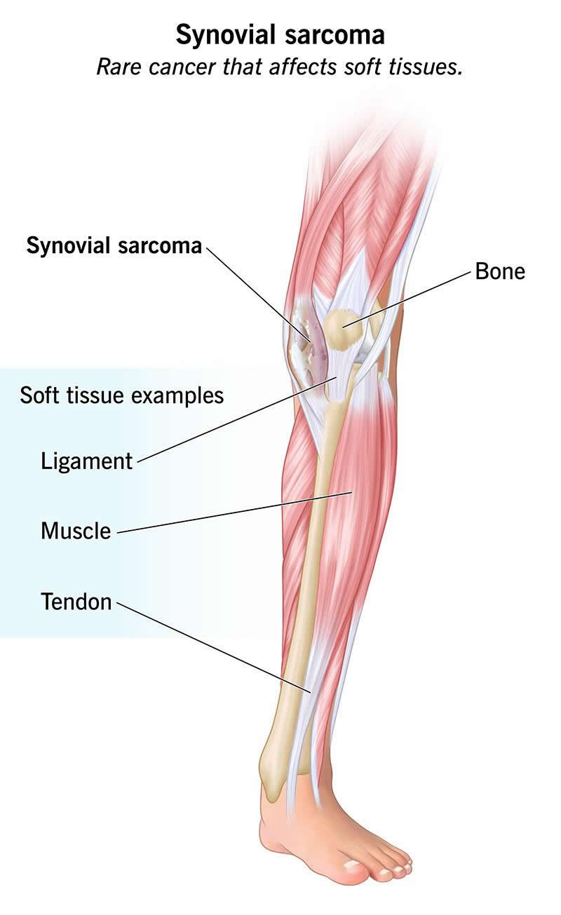 Synovial sarcoma (synovial cell sarcoma) is a rare type of cancer that affects soft tissues, like your muscles or ligaments. It’s called synovial sarcoma because these cancer cells resemble the cells in your synovial joints (like your elbows, hips and shoulders).