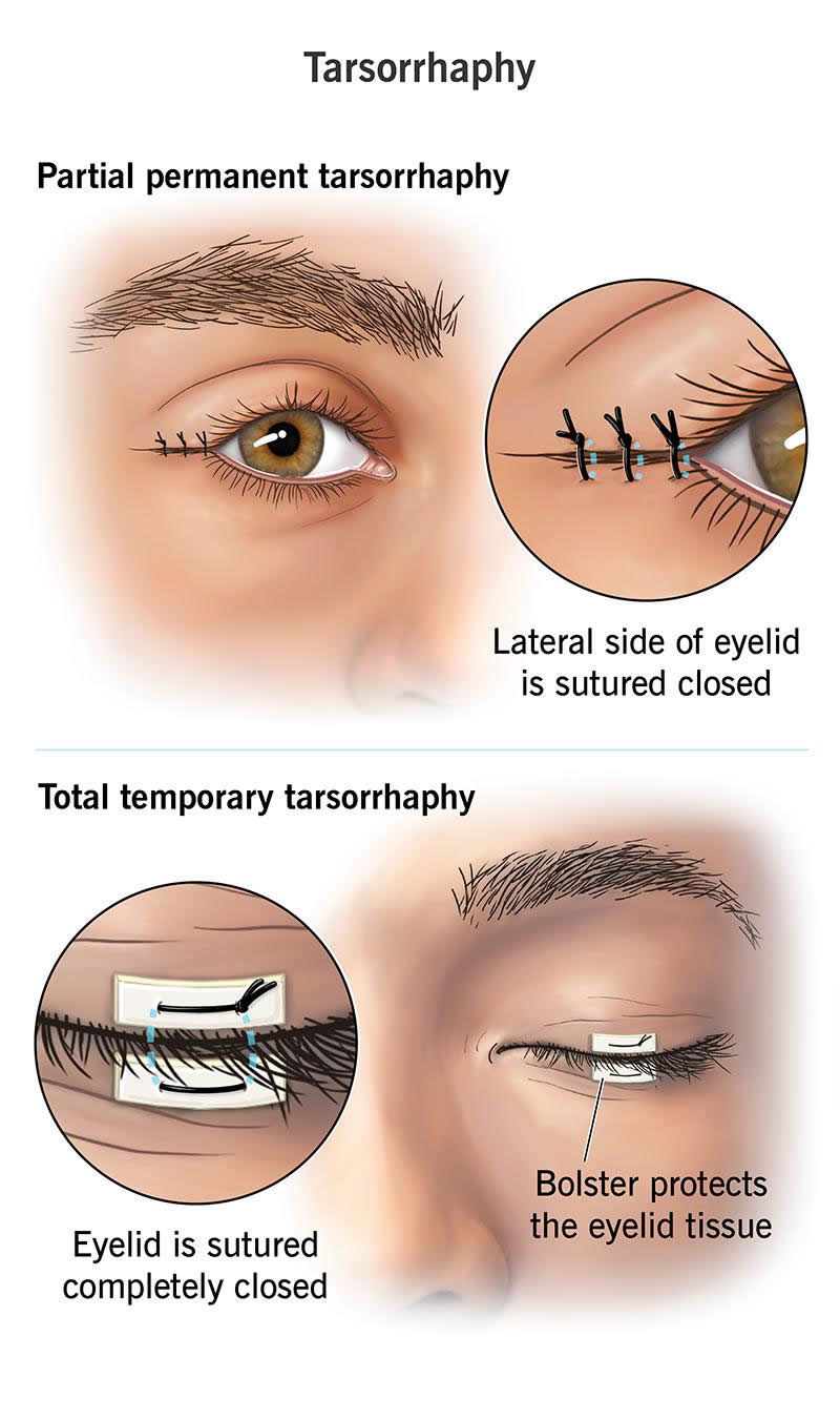 - Total tarsorrhaphy. This means sealing your eyelids completely closed.