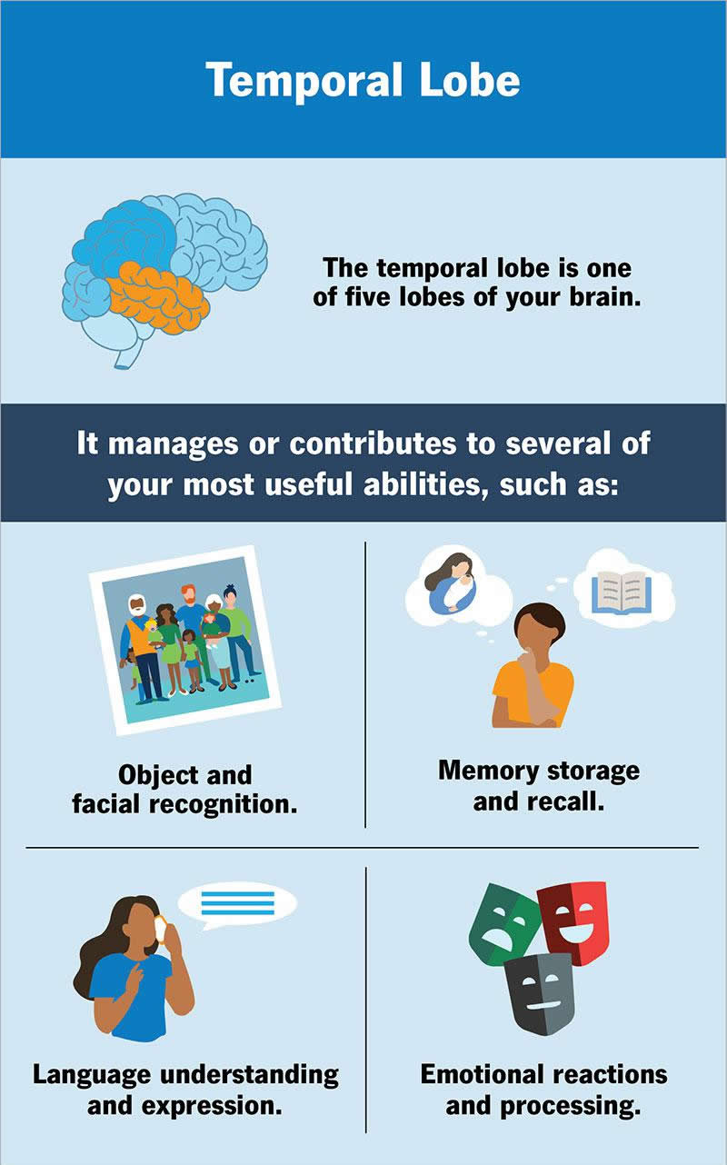 Your temporal lobe is a part of your brain that helps you use your senses to understand and respond to the world around you. It also plays a key role in how you communicate with other people, your ability to access memories, use language and process emotions.